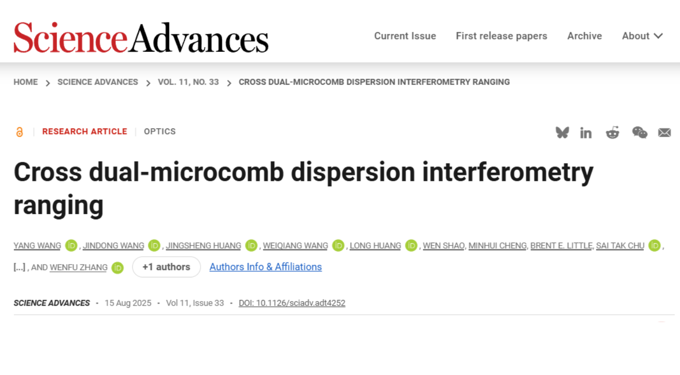 近日,超快光科學與技術全國重點實驗室張文富研究員團隊與其合作者,在基于集成微腔光頻梳的精密測距領域取得進展。研究團隊提出了一種基于集成微腔交叉雙光梳進行絕對距離測量的新方法,解決了傳統雙光梳測距方...
